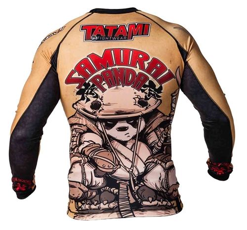 Another fantastic design by the talented Chris Burns. A follow on from the Gentle Panda design our intrepid hero is now an honoured Samurai. Made with the usual high quality materials you would expect from Tatami, this rash guard has fully sublimated artwork to ensure the best quality long term. Features Include - Constructed with high quality 300gsm polyspandex material.