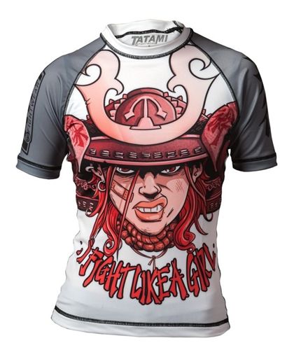 A new design for the ladies by talented artist Chris Burns. The design features a samurai girl with the words "i fight like a girl". Only the highest quality ink and sublimation processes have been used and the detail brought to life on this product is striking.